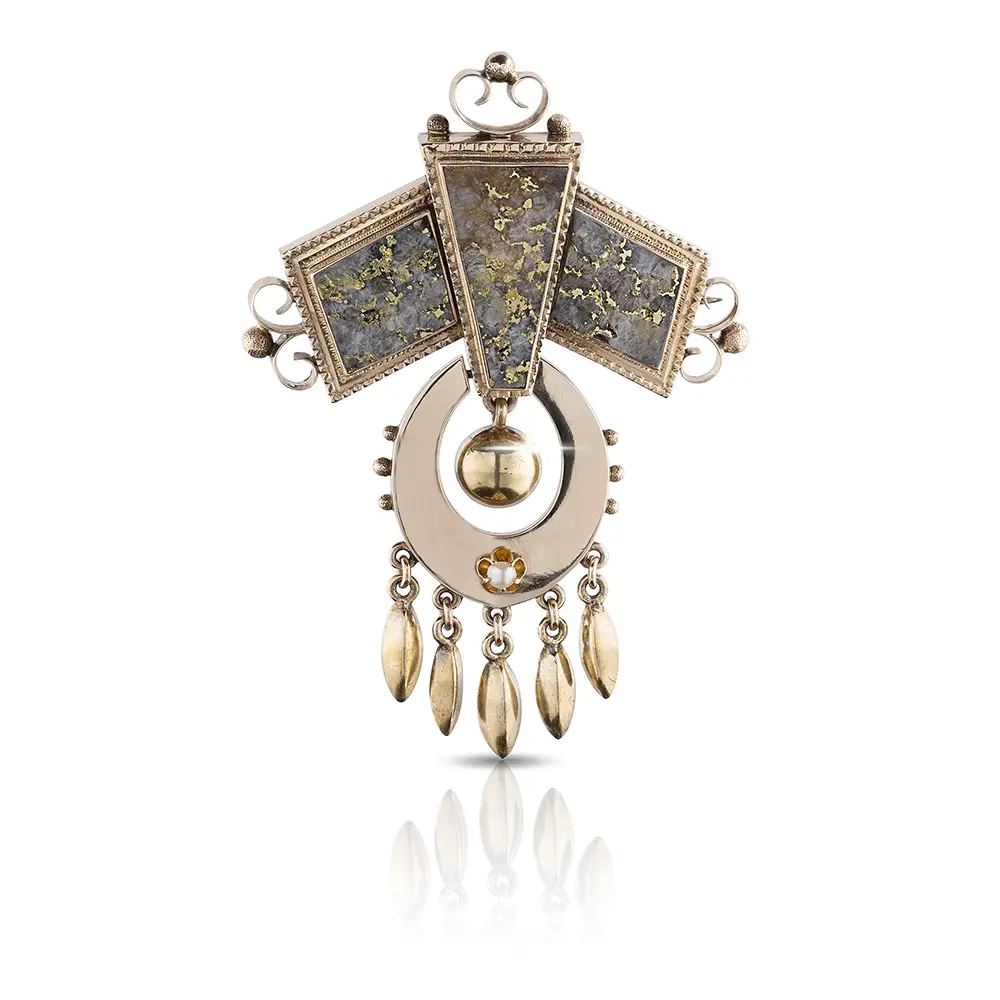 10K Rose Gold Antique Gold In Quartz and Seed Pearl Brooch – FP-RG-00001