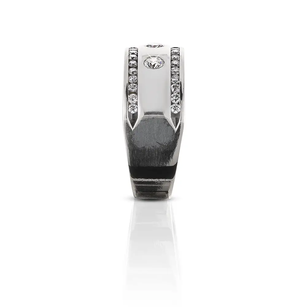 This ring is best paired with a outfit that turns heads, as it helps to make it the center of attention. Wearing this band with anything formal like pencil skirt and blouse is sure to look amazing.